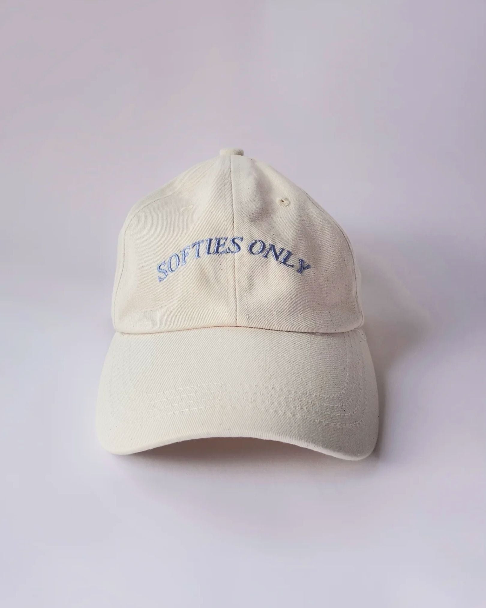 Say hello to your new favourite cap. Embroidered in our iconic Beda blue, "Softies Only" and an exclusive Beda Soft serve icon at the back, our speckled light beige cap goes with absolutely everything. This is going to be the most versatile item in your wardrobe and you won't want to leave home without it.